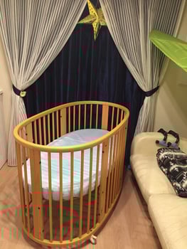 赤ちゃんの頃使っていたSTOKKEのベビーベッドを夜中にひとり組み立てた。説明書も無く、接続する場所間違えたりしているうちに、1時間くらいかかってしまった・・・。