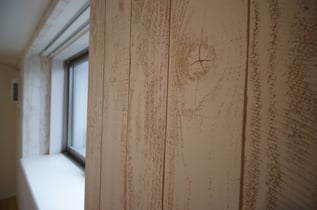 これは、木目調の壁紙なんです。他の面は、前の賃借人様が丁寧に使って頂いていたようで結構綺麗でしたが、この1面だけはどうしても目立つ汚れがあって、変えないわけにいかなかったのです。