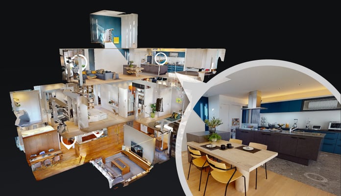 さらには、各地の展示場を見られるシステムが入っているのですが、これが一番すごいかも。リアルな展示場の実際の映像を自由に動かせるし、さらには任意の場所をポインター結ぶと寸法まで出る!