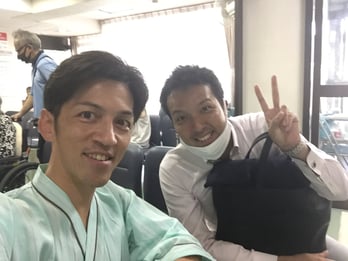 ビジネス交流会で一緒に頑張っているアップルパークの川村くんが、わざわざ仕事中にお見舞いに来てくれました。この病院は病室へのお見舞いは不可なんだけど、一階ロビー周りで会う分にはお咎め無し?!という、グレーゾーンがあります笑