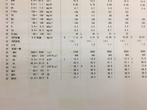炎症の数値も、22だったものが1.12まで下がり、白血球の数値も9200まで上がってしまったのが5700まで下がり、いよいよ数値的には『治ってきた』と言えそうなところまで来ました。